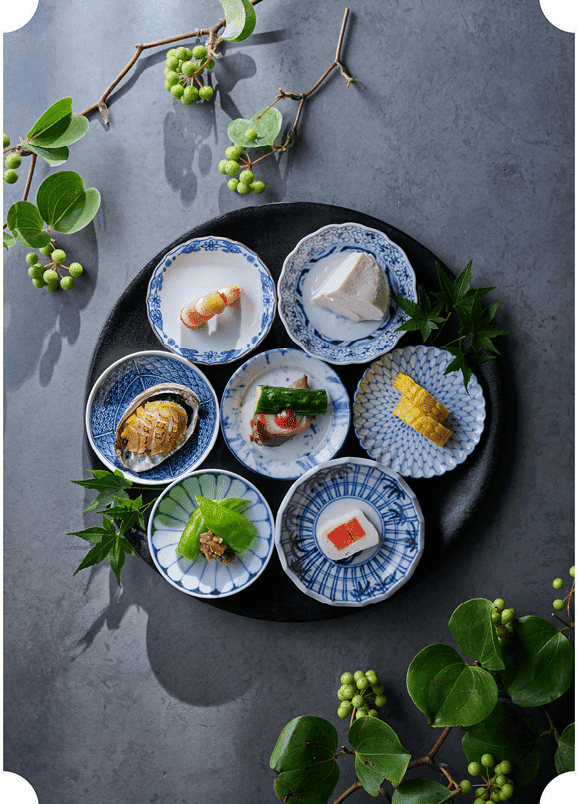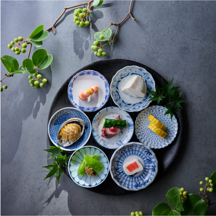響 風庭 赤坂が提供するお料理は、前菜からデザートまでの組み合わせを全てお二人がチョイスできる「オールプリフィックススタイル」を採用しています。招待するゲストのお顔を思い浮かべながら一皿一皿選ぶ、最高のおもてなしスタイルを。