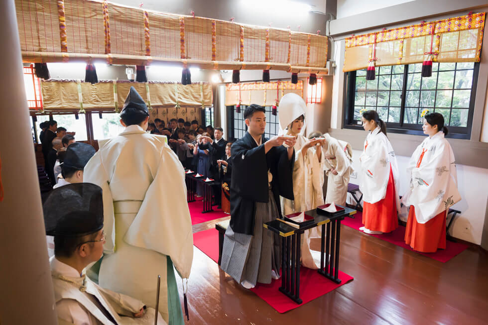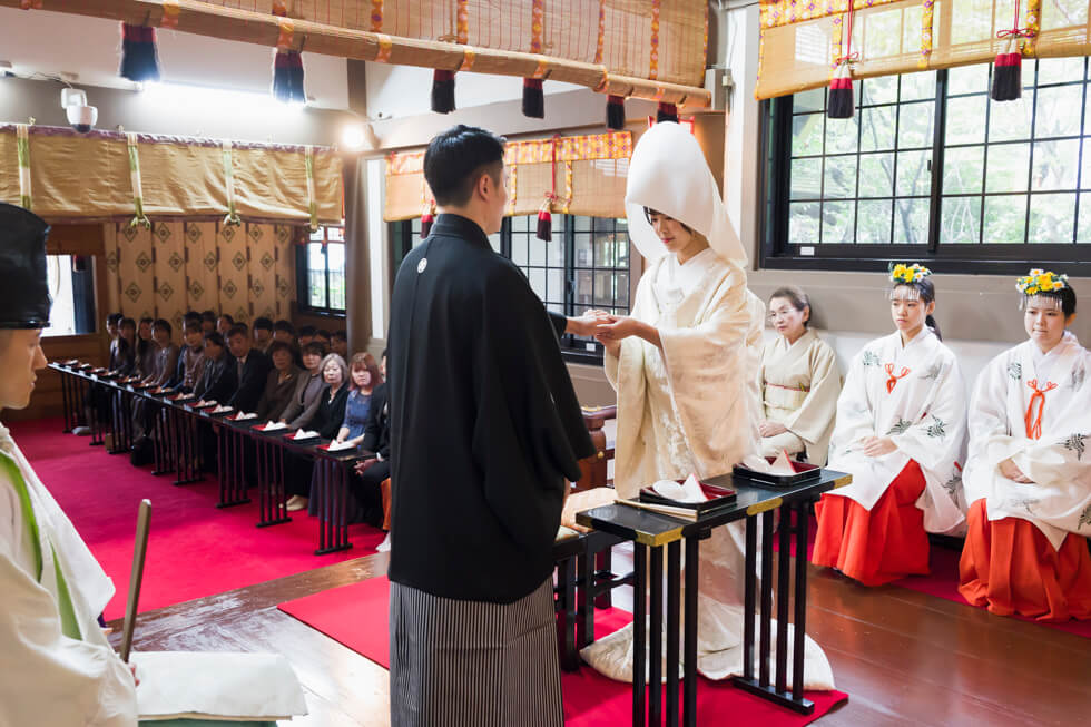 63名芝大神宮での厳かな神前式