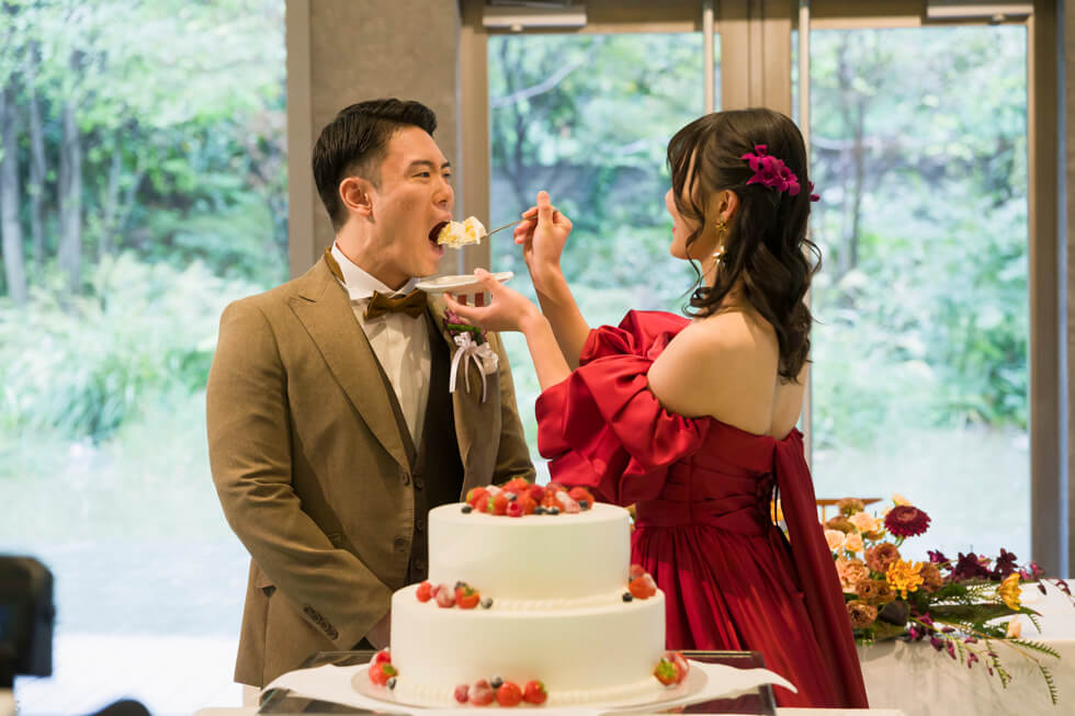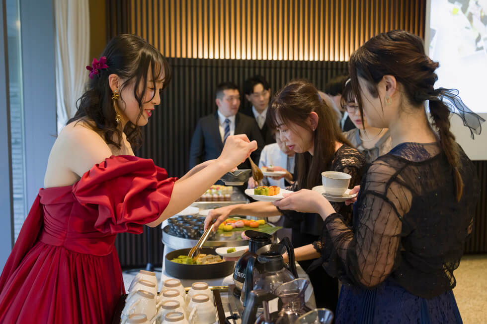更に、おもてなしと距離の近さを両立したい!と選ばれたデザートビュッフェは、新郎新婦様がゲストに直接振舞い、近い距離でゆったりとした歓談の時間を過ごしました。その他にも、新郎新婦様のエピソードにちなんだビンゴなど、新郎新婦様をよく知る皆様だからこそ盛り上がる演出で、心の距離もぐっと縮まりました。